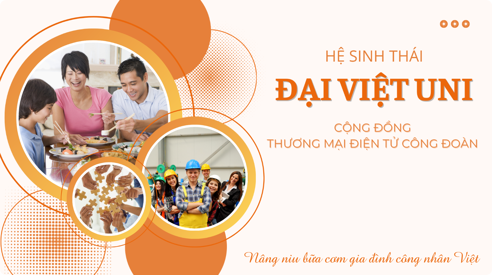 ĐẠI VIỆT UNI là hệ sinh thái cộng đồng thương mại điện tử công đoàn với mục tiêu “Nâng niu bữa cơm gia đình công nhân Việt”, tối ưu hoá chi phí sử dụng hàng tiêu dùng nhanh đến cộng đồng công nhân thuộc khối công đoàn.